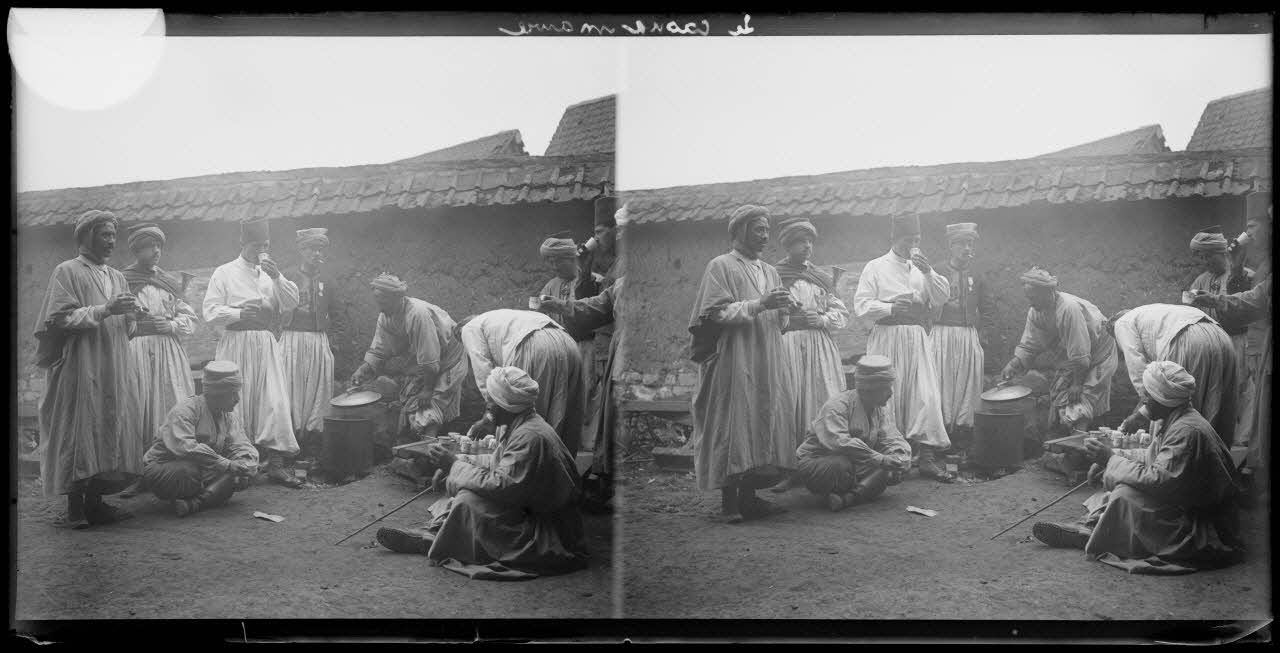 Repas des spahis au camp.