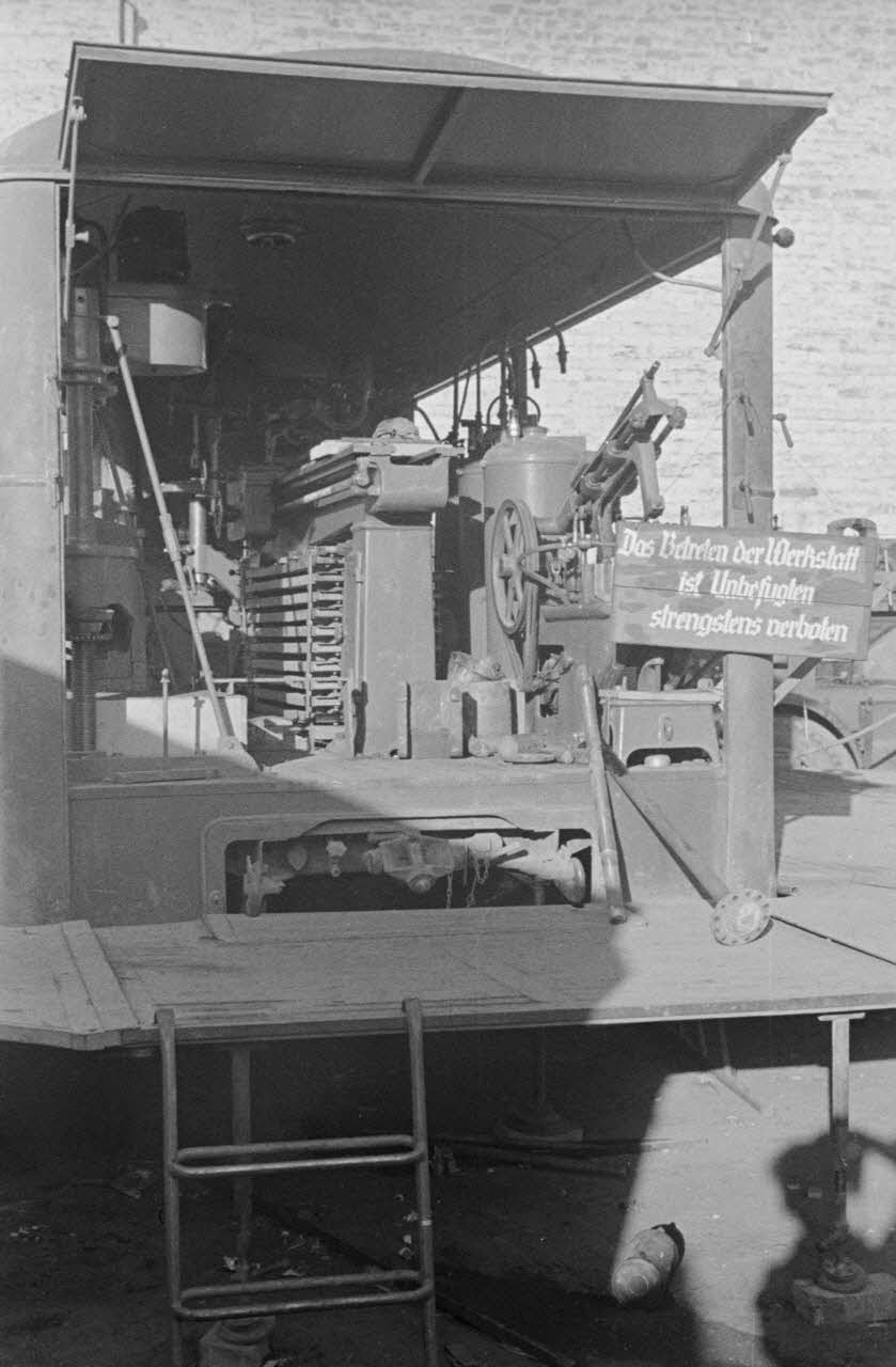 Un véhicule, un Kfz.15, de la compagnie de propagande Luftwaffe Z.b.v stationne dans une rue, qui est probablement la ville de Petrozavodsk (Carélie, Russie).