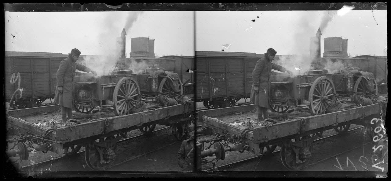 - Gare de Méru (11/04/1918, V 2624 à V 2626) du matériel agricole est embarqué sur des wagons pour être transféré vers l'arrière du front.