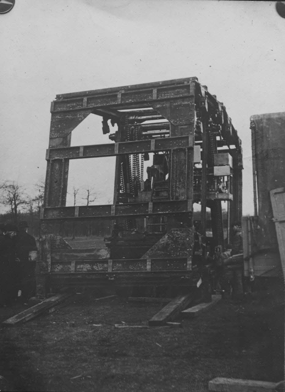 Premier appareil d'expériences J.-L. Breton pour la destruction des réseaux de fils de fer (décembre 1914).