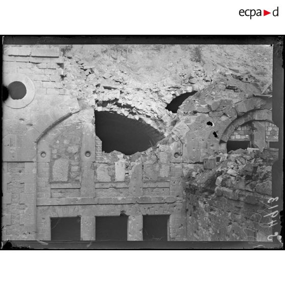 Fort du Camp des Romains. Les effets d'un obus de 400 mm sur le fort.