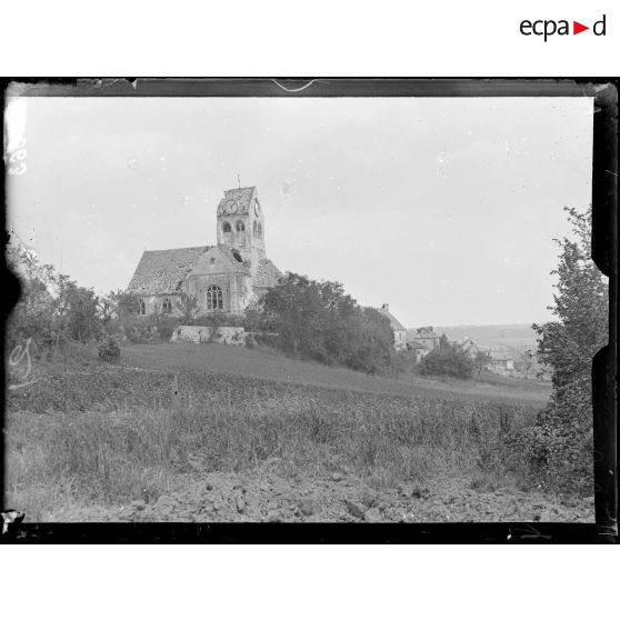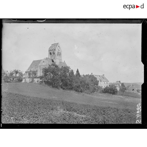 Veuilly-la-Poterie (Aisne). L'église. Les côtes du fond sont occupées par les allemands.