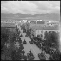 Cérémonie militaire à Ouargla.Note : Concernant la visite de Max Lejeune, ministre du Sahara à…