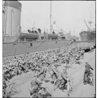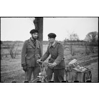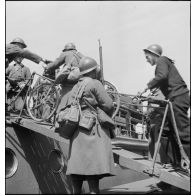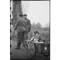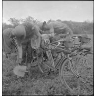 L'équipe de cyclistes du 8e RD (régiment de dragons) d'Issoire prépare les paquetages avant le…
