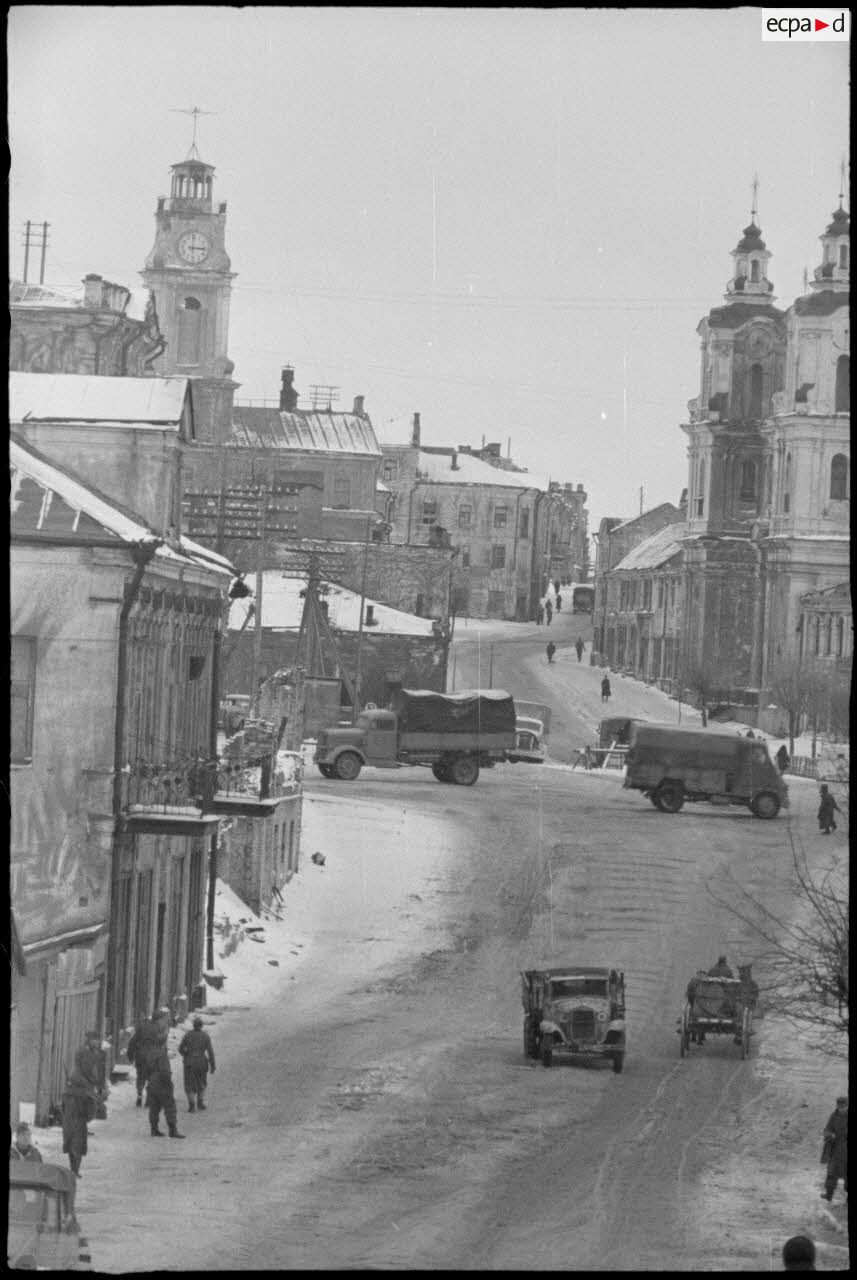 A Vitebsk (Witebsk), les colonnes de ravitaillement allemandes et la vie quotidienne des troupes allemandes dans la ville de Biélorussie.