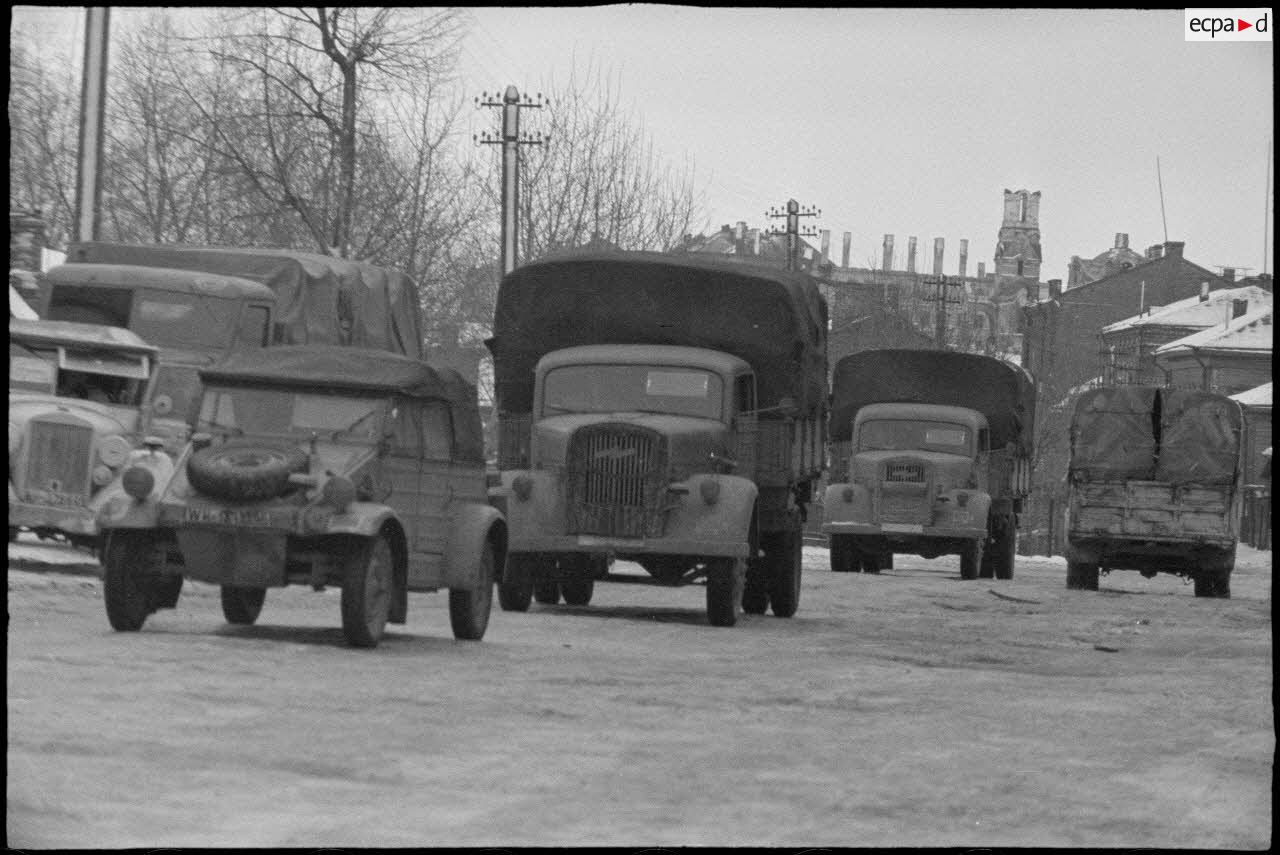 A Vitebsk (Witebsk), les colonnes de ravitaillement allemandes et la vie quotidienne des troupes allemandes dans la ville de Biélorussie.