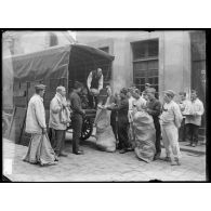 Des fantassins préposés à la corvée de pain s'occupent du ravitaillement pour le régiment.Note :…