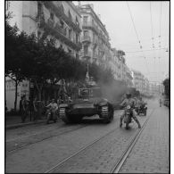 Après son débarquement à Marseille, la 5e DB (division blindée) défile dans les rues de la cité…