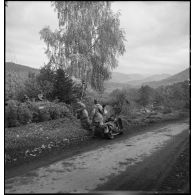 L'équipage d'un side-car Gnome et Rhône AX2 du 6e GRDI (groupe de reconnaissance de division…
