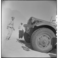 Grand Erg oriental. Un camion 6x6 et un tracteur…