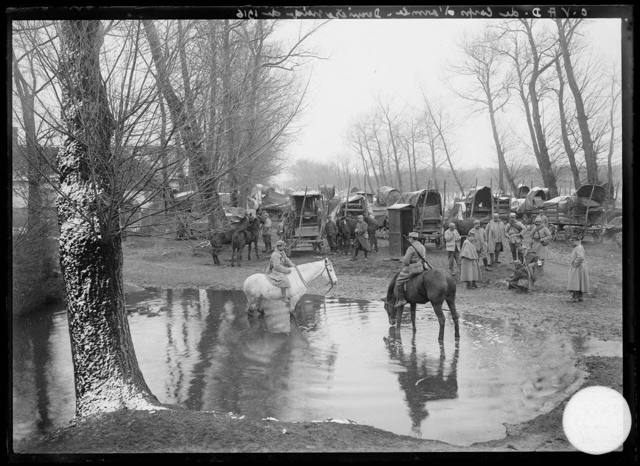 D193-1-968 Troupeau de bétail d'armée (TBA) à l'abreuvoir, 1918