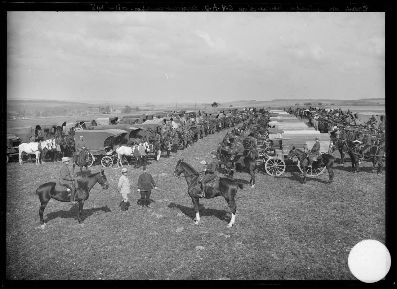 Train des équipages, revue d'un CVAD arrivant au repos, Oise, 1915. [légende d'origine]