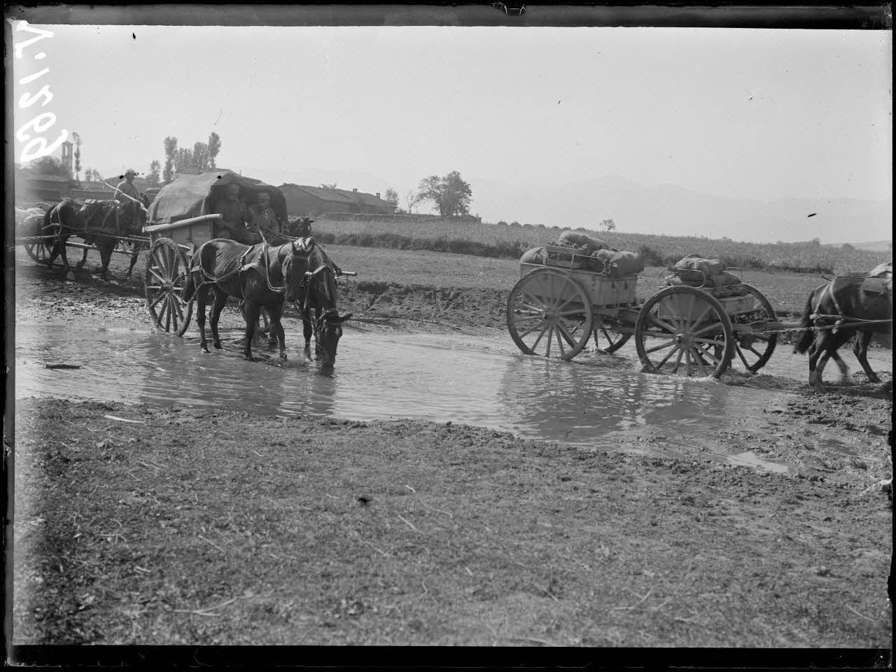 Vrbeni (Macédoine). Passage de caissons d'artillerie serbe sur le Vrbeni. [légende d'origine]