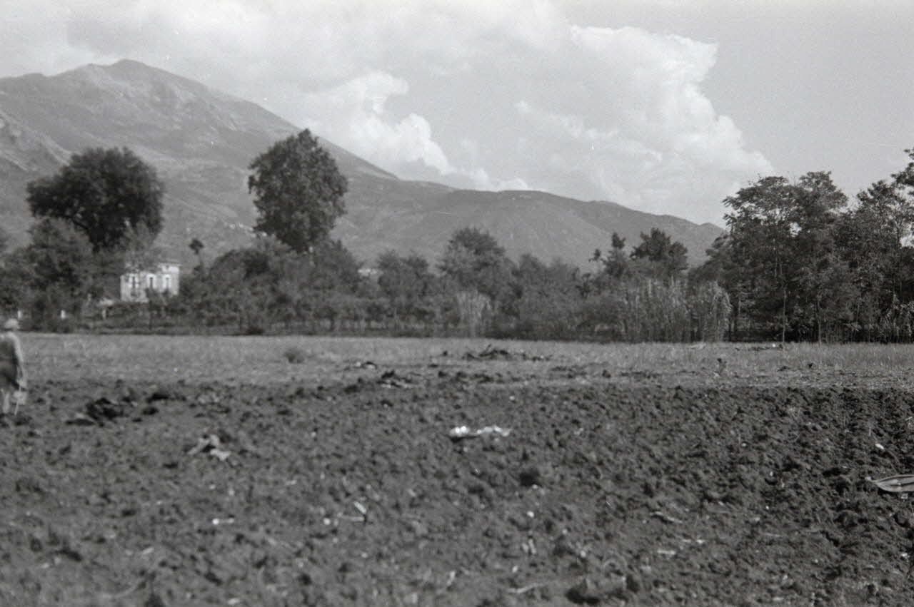 En Italie, dans le Latium, tombes de soldats allemands dans le secteur de Cassino et carcasse d'un bimoteur P-38 Lightning.