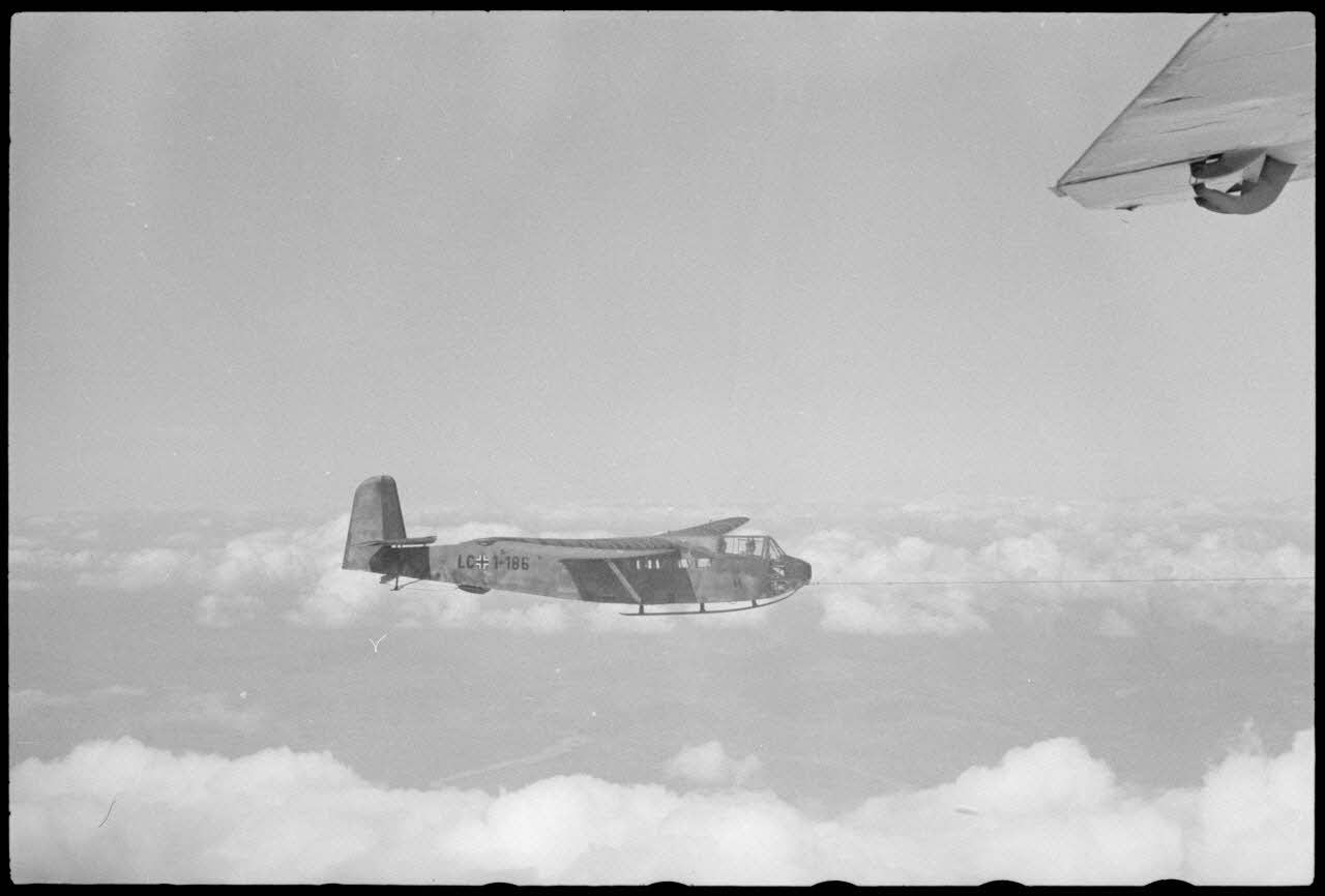 Lors d'un vol d'entraînement de jeunes pilotes de planeurs du IIIe groupe du Luftlandegeschwader 1.