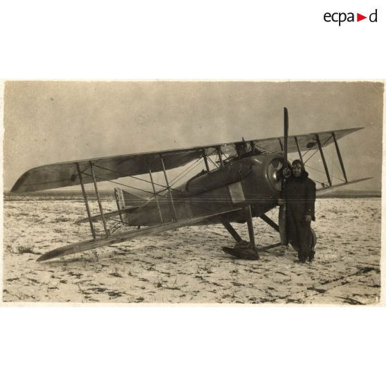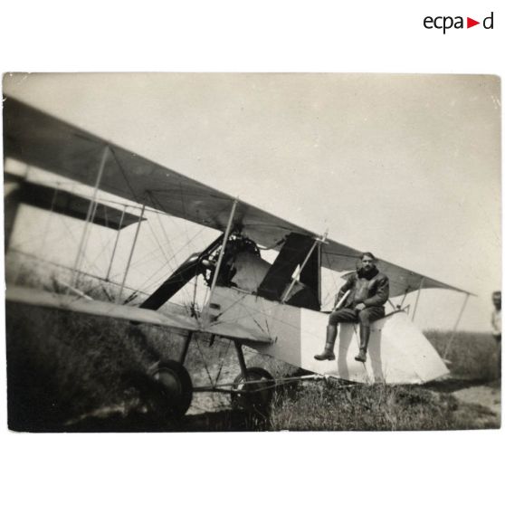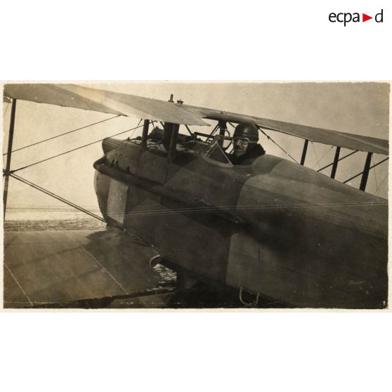 Lieutenant Luc-Pupat sur un Spad avant le départ pour un premier vol sur cet appareil.