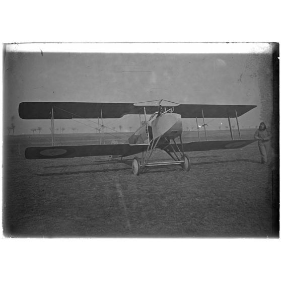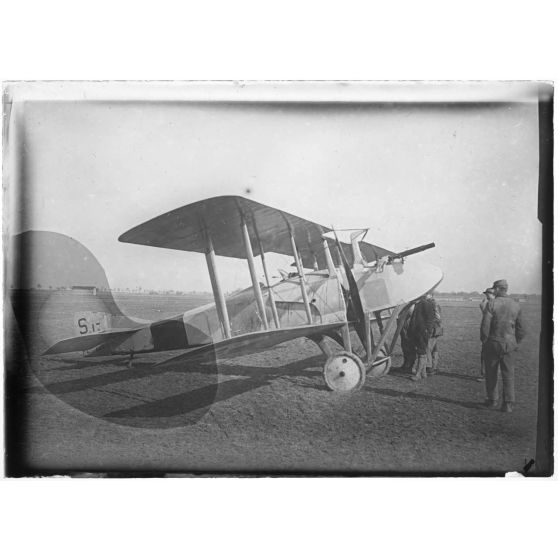 [Caudron 2 moteurs. Un photographe en prend un cliché avec un appareil posé sur un pied].
