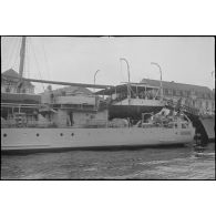 L'aviso Amiral Mouchez au mouillage dans un port.