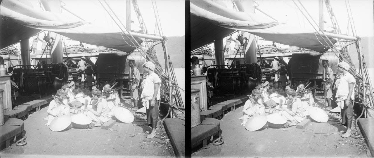 (Septembre 1908) Retour en France. 1454. En rade de Tourane. Aviso "la Manche".