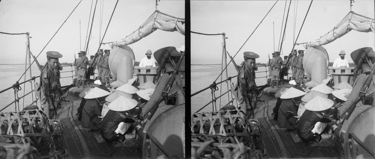(Septembre 1908) Retour en France. 1454. En rade de Tourane. Aviso "la Manche".