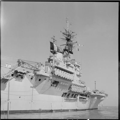 Le porte-avions Arromanches vient de jeter l'ancre.