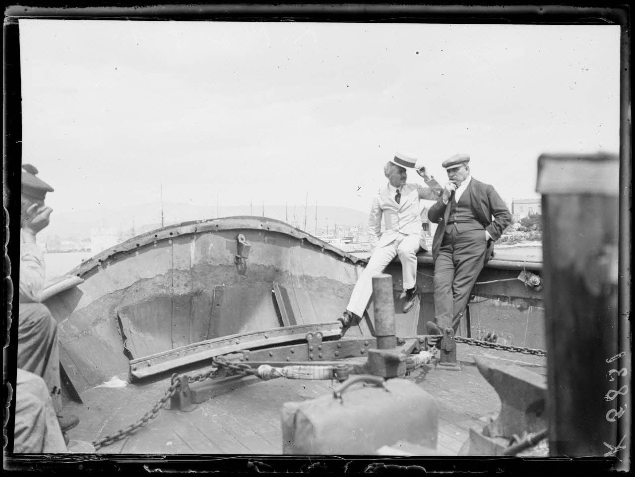 Au Pirée. A bord du Ténédos, le général Dousmanis, chef de l'Eta major de l'armée grecque et Mr Dragoumis. [légende d'origine]