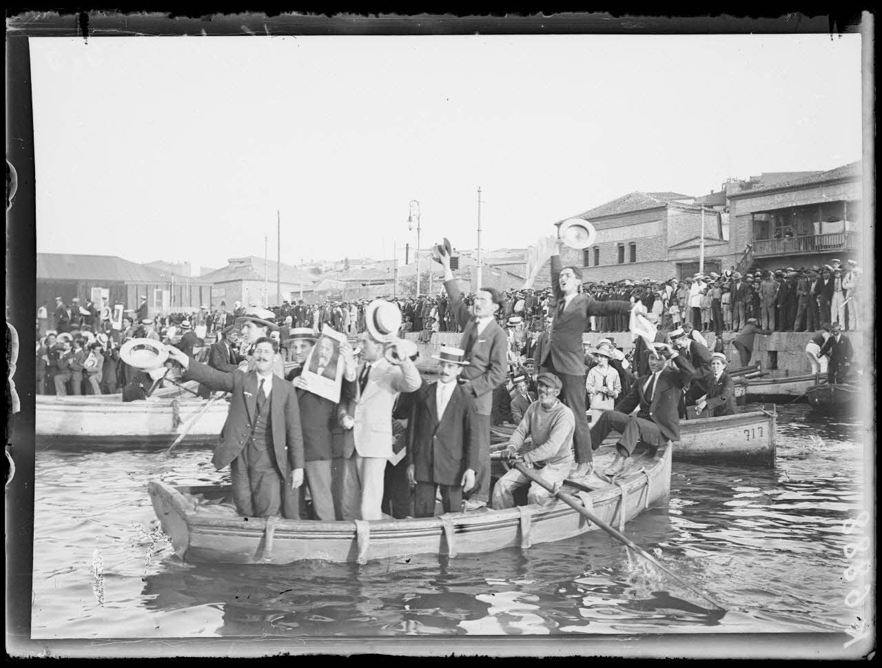 Pirée. Manifestation des étudiants en l'honneur de Mr Vénizélos. Ovation devant le Sphendoni. [légende d'origine]