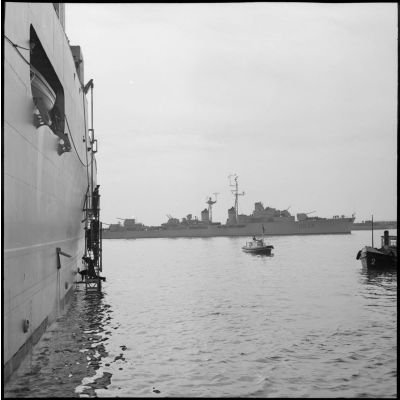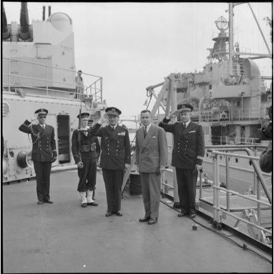 Le reportage évoque l'arrivée d'une fraction de l'escadre commandée par le vice-amiral Jozan. S'en suit une cérémonie d'accueil à bord du "De Grasse".