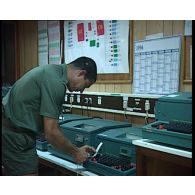 Opération en août 1957 à Guertoufa, Claude Roudeau à la radio depuis un véhicule de transmissions.…