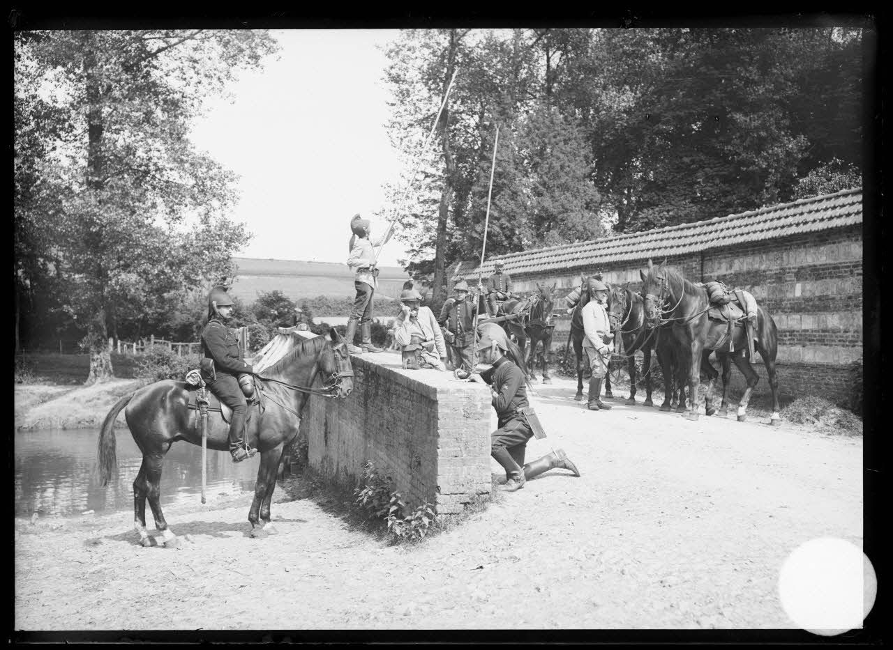 Pas-de-Calais, juillet 1915, attaque de Souchez, pose d'une ligne télégraphique - division de cavalerie. [légende d'origine]