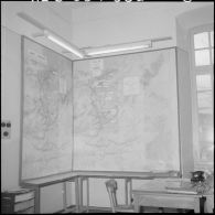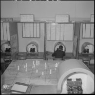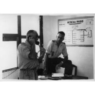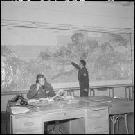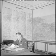 Officiers du 8e régiment de spahis marocains (RSM) dans un bureau. L'un des deux est au téléphone.