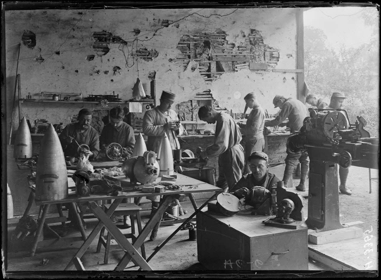 Un central télégraphique est établi à Moreuil (Somme) où est installé l'échelon du service photographique de la 10e armée. Dans un atelier, des mécaniciens réparent les appareils TSF (télégraphie sans fil) des avions. Des voitures se dirigent vers le poste radiotélégraphique d'infanterie à l'arrière des premières lignes. Une ligne fixe relie le village à Hangest-en-Santerre, Erches (côte 89) et Harbonnières. Entre Folies et Beaufort, un conduit souterrain relie le central d'artillerie.