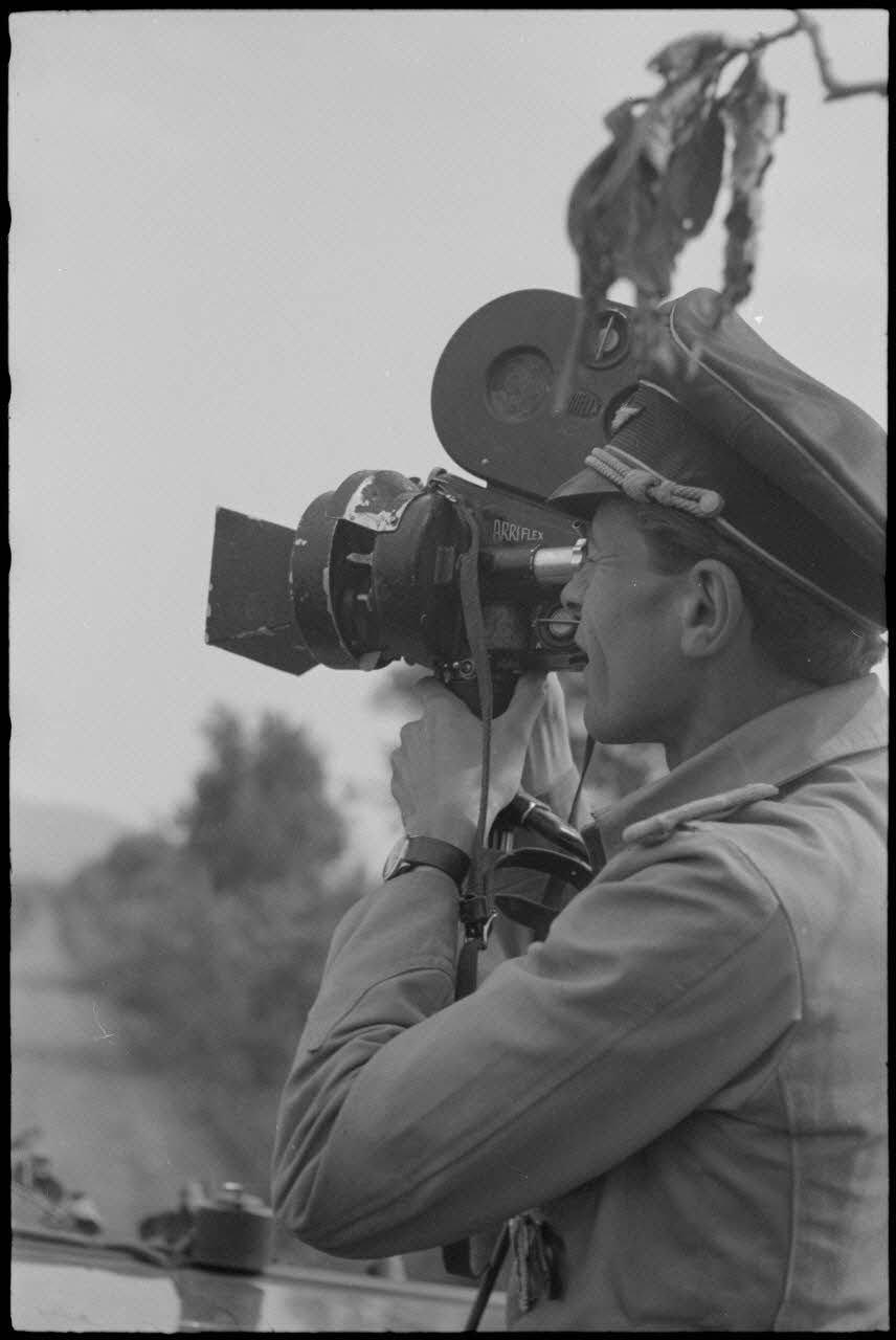 Portraits du reporter photographe et caméraman (Bild. et Filmberichter) Hans Jacobi utilisant une caméra Arriflex (FALLAOK F2089 L34 et L35).