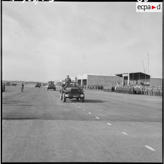 Cérémonie pour le départ du général Lautier, commandant la direction régionale du matériel (DRM) n° 10. Défilé motorisé.