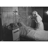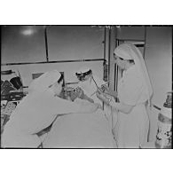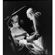 Dans la salle d'opérations de l'ouvrage du Hackenberg un infirmier et le médecin Grauer (à droite)…