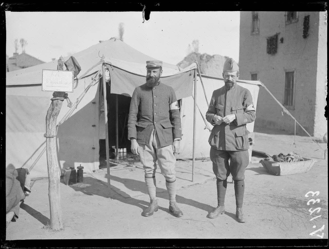 Intervention médicale à Sopotznni, octobre 1916. Campement français sur la Sakaleva.