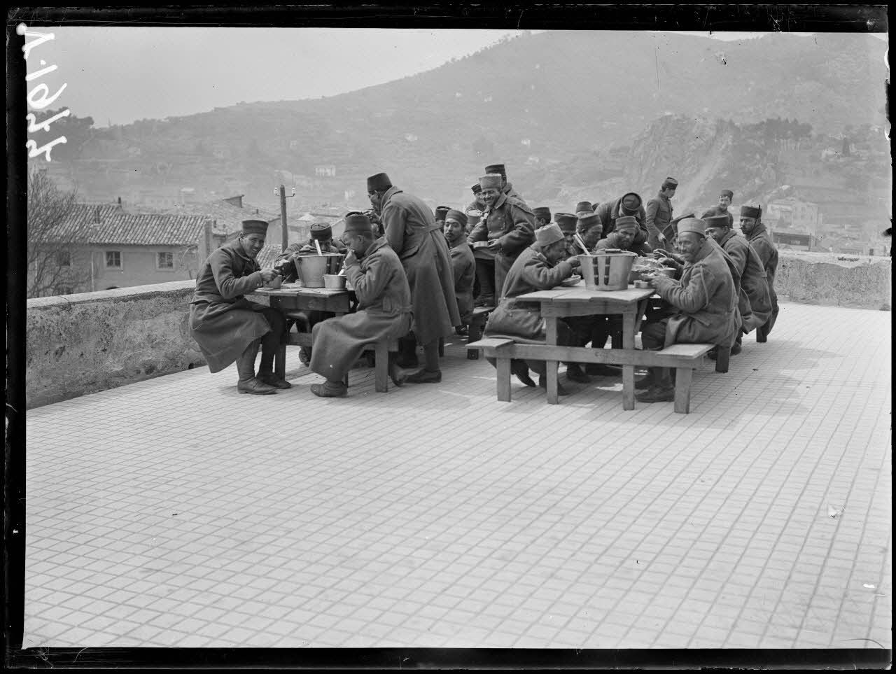 Le même jour à Alès dans le Gard, un commandant passe en revue des tirailleurs marocains au Fort Vauban. Les soldats marocains jouent aux cartes, sont employés aux cultures puis se rassemblent pour la soupe, partagée avec le capitaine Creutzer.