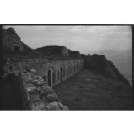 [Château-fort en ruine vu depuis un pont].