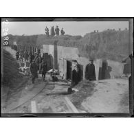 [10-1915. Gouy. Abris en béton armé]. On les pose.…