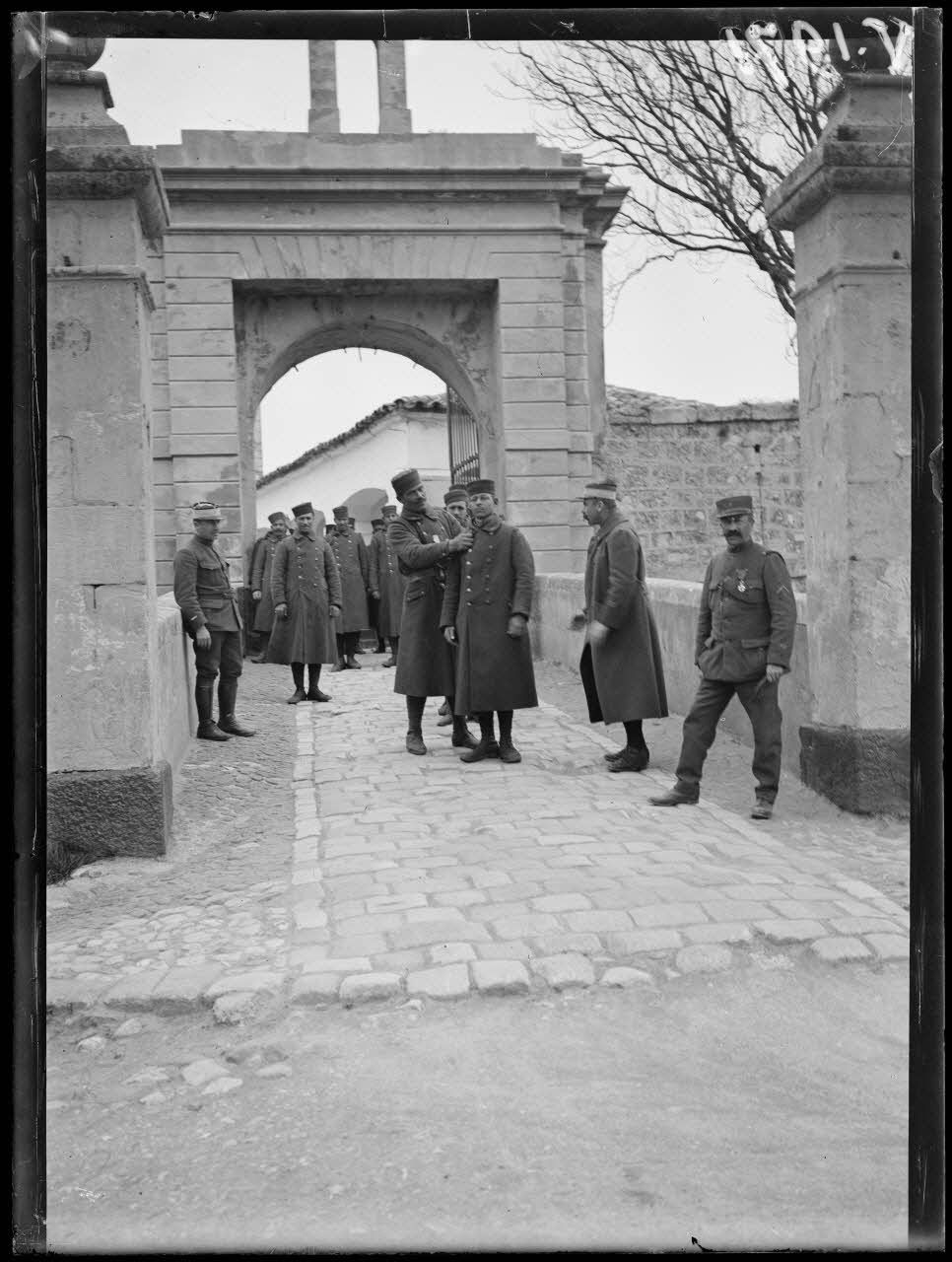 Alès (Gard). Fort Vauban. Le commandant passe en revue les tirailleurs marocains.