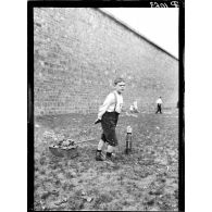 [Militaire jouant avec un mouton noir dans une…