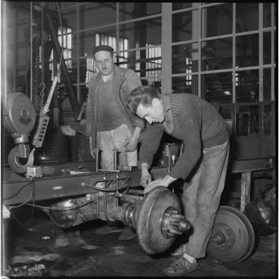 Vue intérieure de l'atelier automobile du quartier de Belcourt.