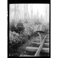Des coolies travaillant à la construction d’une…