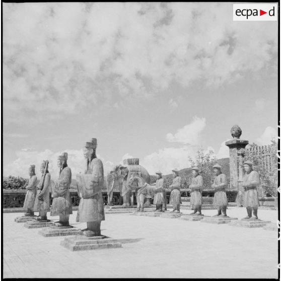 Statues de la cour sur la deuxième terrasse du tombeau de l'empereur Khai Dinh.