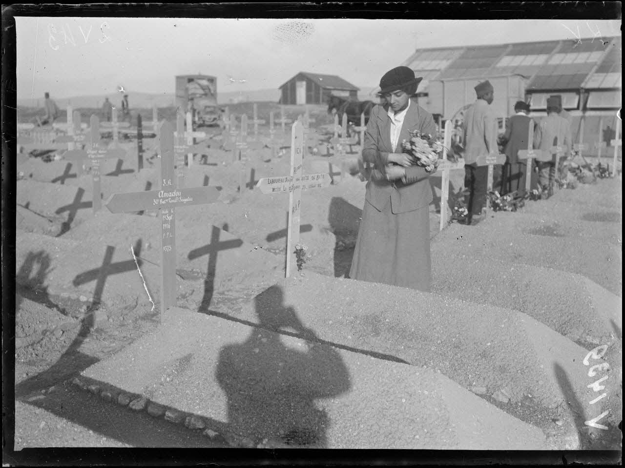 La Toussaint à Salonique. Jeune fille fleurissant des tombes de soldats.