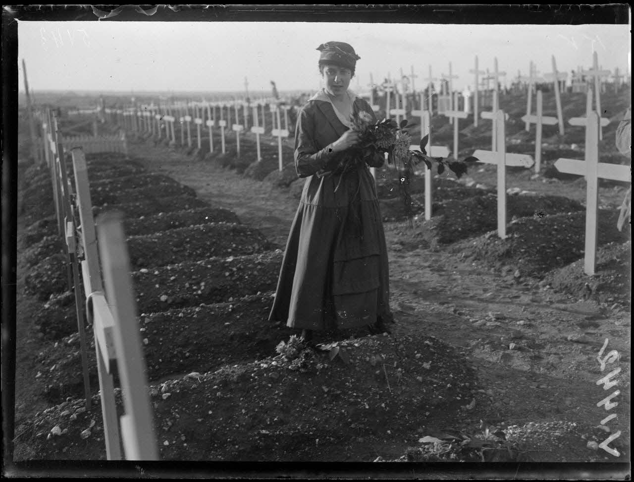 La Toussaint à Salonique. Jeune fille fleurissant des tombes de soldats.