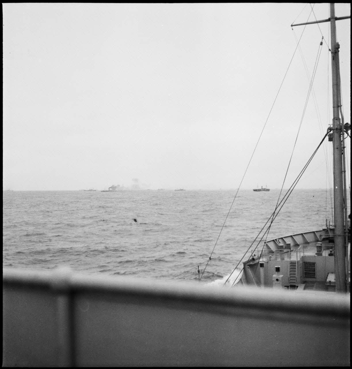 Convoi de la marine marchande vu depuis le pont du pétrolier Bourgogne.