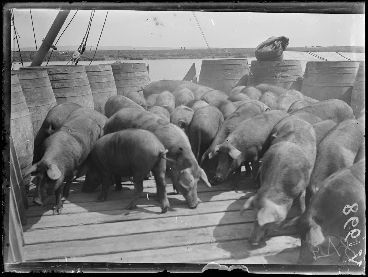 Kénitra. Embarquement des porcs à destination de la France. [légende d'origine]
