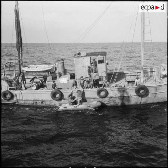 Patrouilles en mer à bord du dragueur Ajonc, commandé par le Lieutenant de vaisseau Gagliardi.