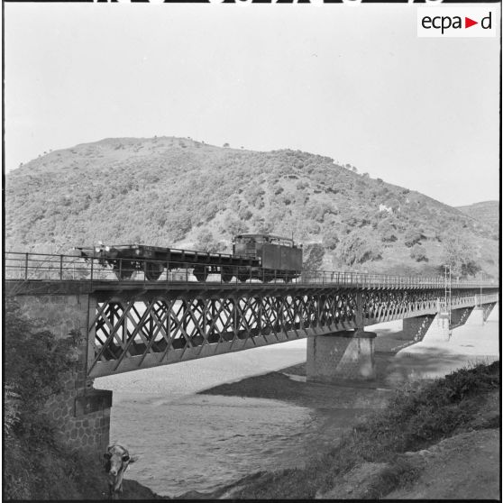 587e bataillon du train (BT). Passage du train de voyageurs dans les gorges de Palestro.